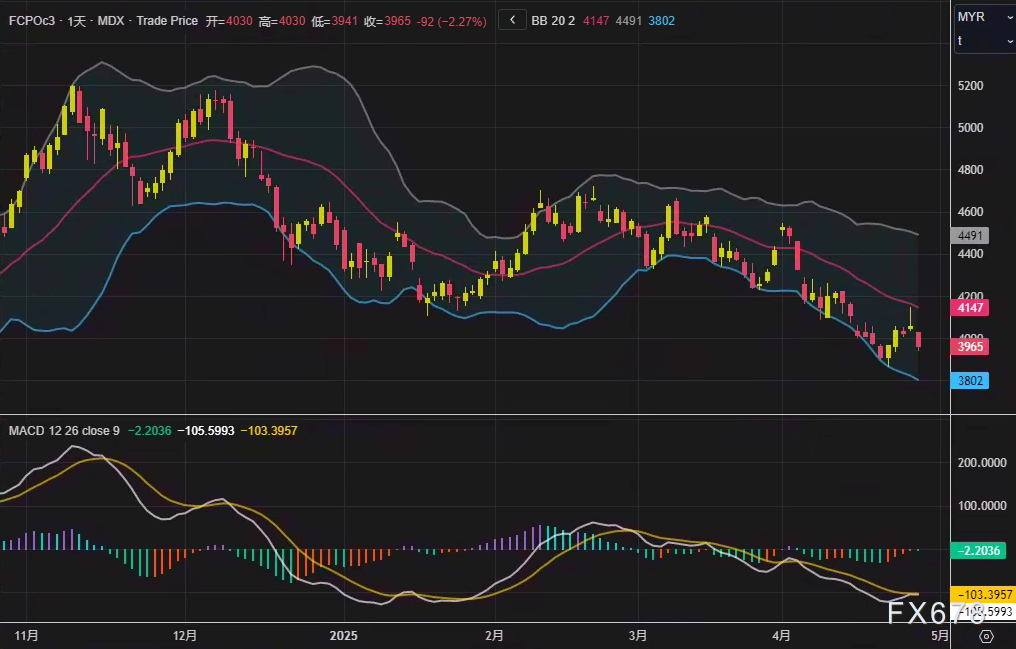 马来西亚棕榈油局(MPOB)预计于5月13日发布4月供需数据。知名机构调查显示,4月棕榈油产量较3月激增10.3%,市场普遍预期库存将实现六个月来首次上升。这一变化打破了此前因季节性减产导致的供应紧张格局。产量回升主要得益于马来西亚主要产区天气条件改善,棕榈果采收效率提升。然而,库存上升可能对价格形成进一步压力,尤其是当前市场情绪已因外部油脂市场走弱而偏谨慎。   出口方面,船运机构估算4月1日至25日马来西亚棕榈油产品出口量较上月同期增长13.8%至14.8%。这一数据超出市场预期,显示全球需求依然稳健。值得注意的是,马来西亚驻英国高级官员拿督Zakri Jaafar透露,4月初8000吨沙巴棕榈油以零关税进入英国利物浦港,标志着《全面与进步跨太平洋伙伴关系协定》(CPTPP)框架下马来西亚棕榈油对英贸易的突破。CPTPP的生效为马来西亚棕榈油开拓欧洲市场打开新窗口,长期看有望巩固其出口竞争力。   棕榈油价格与全球植物油市场高度联动。4月28日,大连商品交易所豆油主力合约下跌1.54%,棕榈油合约下跌2.15%,芝加哥商品交易所(CBOT)豆油合约下跌1.12%。芝加哥豆油的疲软直接拖累棕榈油期货,反映出全球植物油需求短期放缓的信号。此外,林吉特兑美元汇率上涨0.23%,使得棕榈油对持有外币的买家更昂贵,进一步抑制了国际市场需求。   原油市场方面,油价保持稳定,投资者关注全球经济增长前景及OPEC+供应政策的不确定性。原油价格的平稳为棕榈油作为生物柴油原料提供一定支撑,但当前植物油市场的整体疲态限制了这一利好的发挥。交易者需密切关注原油价格的后续走势,若油价显著上行,可能为棕榈油价格提供一定底部支撑。   吉隆坡交易公司Iceberg X Sdn Bhd的交易员David Ng对当前市场给出明确判断:“棕榈油期货下跌主要是由于芝加哥豆油市场的疲软,以及市场预期未来几周产量将增加。”他进一步指出,“我们预计支撑位在3900林吉特,阻力位在4080林吉特。”这一区间为交易者提供了短期操作的参考框架。3900林吉特的支撑位若有效,可能吸引买盘入场,而4080林吉特的阻力位则需突破以扭转当前弱势格局。   值得注意的是,市场对未来走势的分歧正在加大。部分机构认为,产量增加和库存回升可能在5月进一步压低价格,尤其是在外部油脂市场未见起色的情况下。然而,出口数据超预期及CPTPP带来的贸易红利为市场注入乐观因素。长期看,生物柴油需求的潜在增长仍是关键变量。马来西亚和印尼作为全球棕榈油主要产国,其生物柴油政策调整可能对供需格局产生深远影响。   当前棕榈油市场正处于多空交织的复杂局面。短期内,产量预期升温和外部油脂市场疲软主导价格下行,3961林吉特的收盘价已逼近3900林吉特的支撑位,交易者需警惕进一步下探风险。然而,出口数据亮眼及CPTPP带来的贸易机遇为市场提供一定韧性。长期看,生物柴油需求的增长潜力及原油价格走势仍是关键变量。若外部油脂市场企稳或原油价格上行,棕榈油可能在3900林吉特附近找到支撑并尝试反弹;反之,若库存持续累积且需求未见起色,价格或将进一步承压。